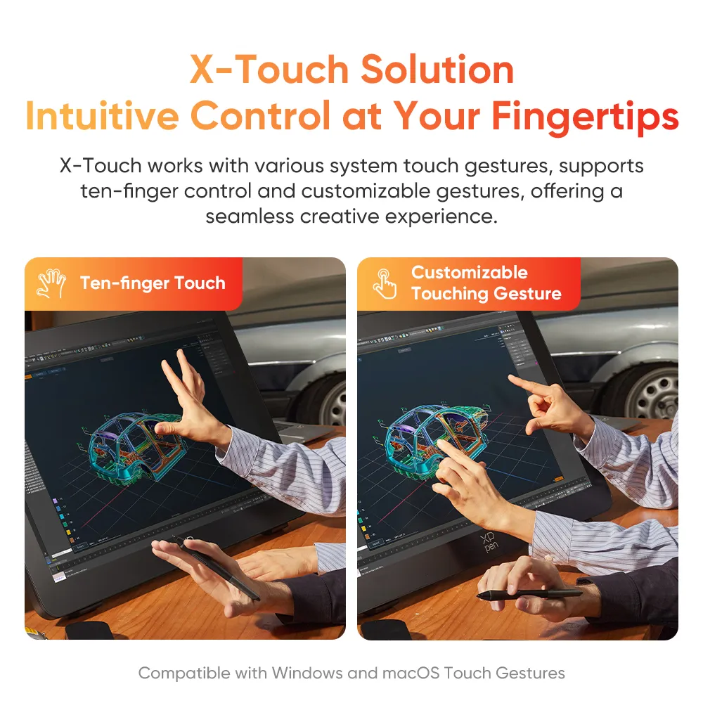 X-Touch supports Windows and macOS touch gestures, delivering smooth, intuitive swipes, zooms, and rotations so you can create like a pro from day one. Ten-finger touch responds instantly to keep pace with inspiration, while custom gestures let you shape a seamless creative workflow.