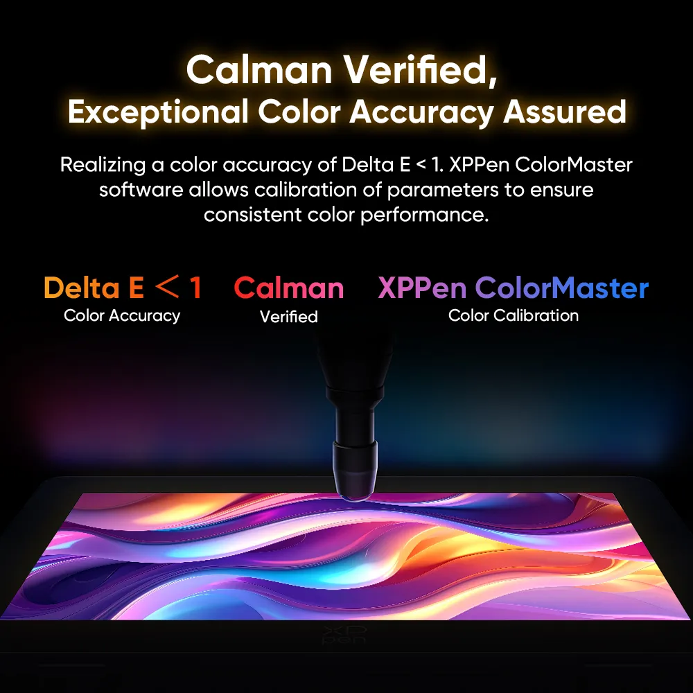 Delta E < 1 ensures true-to-life color accuracy. Calman Verified guarantees professional-grade results, while the XPPen ColorMaster* software enables calibration of color temperature and space for precise and consistent performance.
